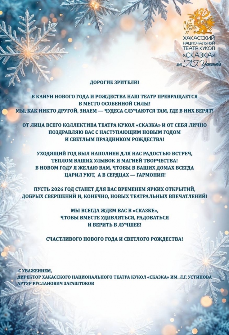 Пусть 2026 год станет для вас временем ярких открытий, добрых свершений и, конечно, новых театральных впечатлений!